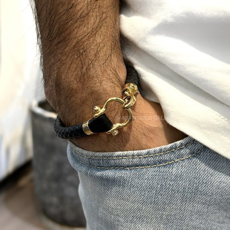 دستبند امگا طلایی بند رابر مشکی
