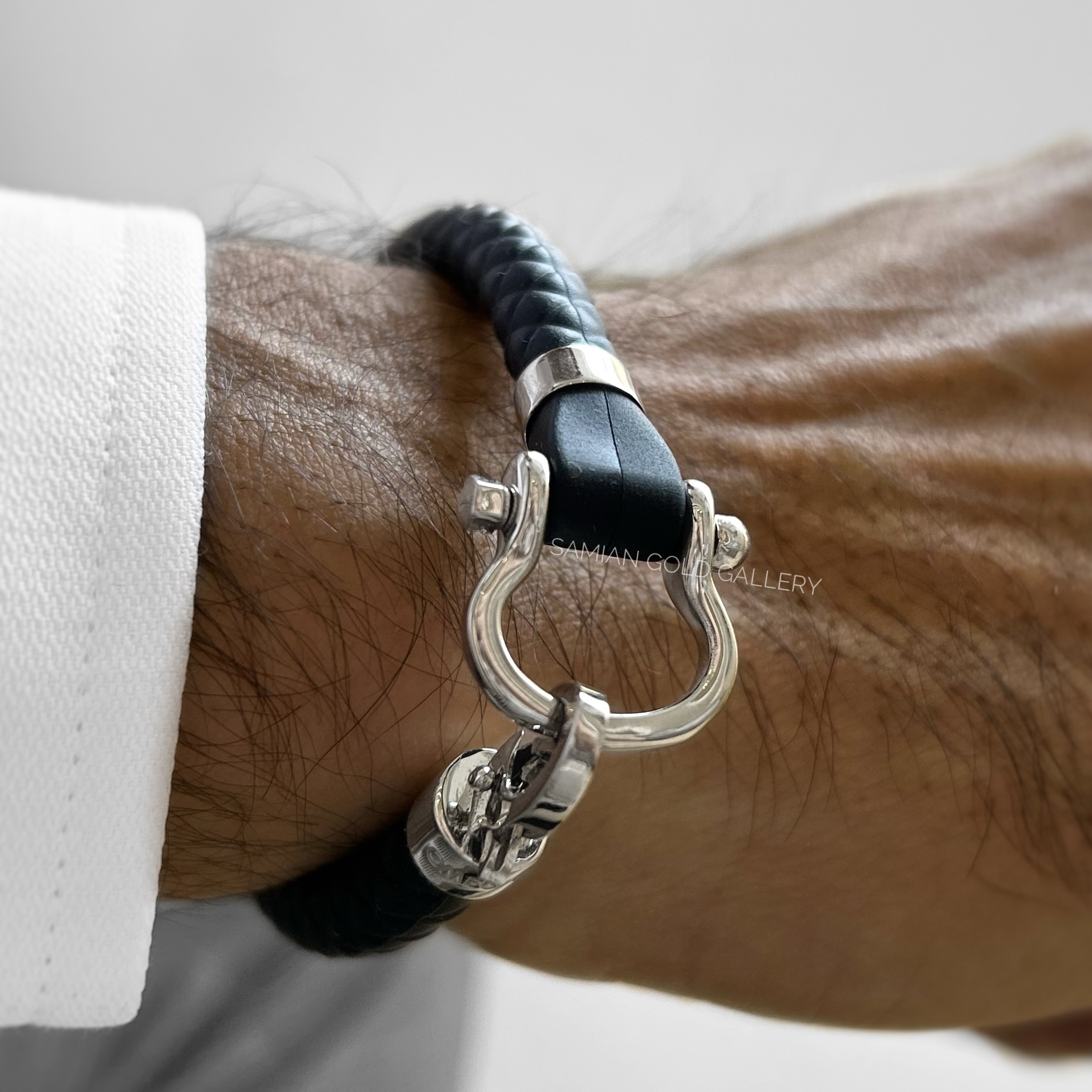 دستبند امگا سفید بند رابر سرمه ای