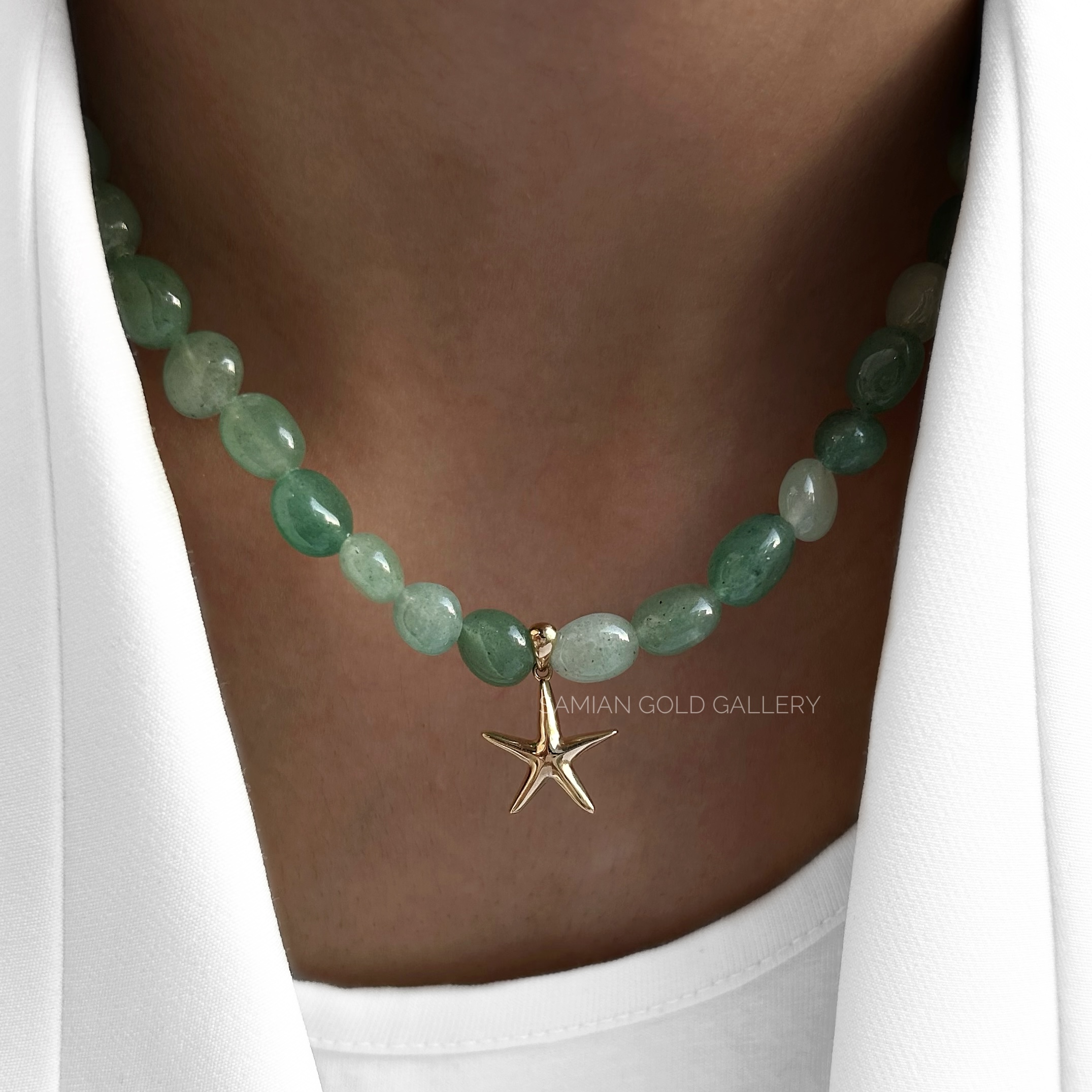 گردنبند ستاره دریایی با سنگ اونتورین سبز